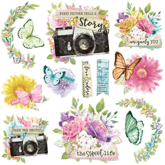 Simple Vintage Life In Bloom . Chipboard Stickers