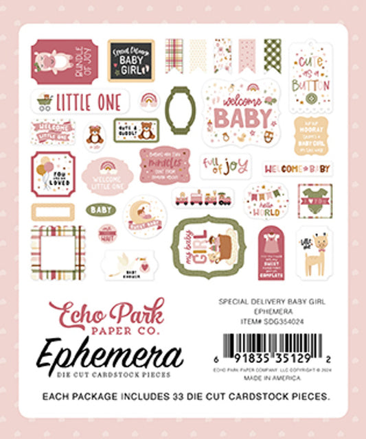Special Delivery Baby Girl . Chipboard Accents