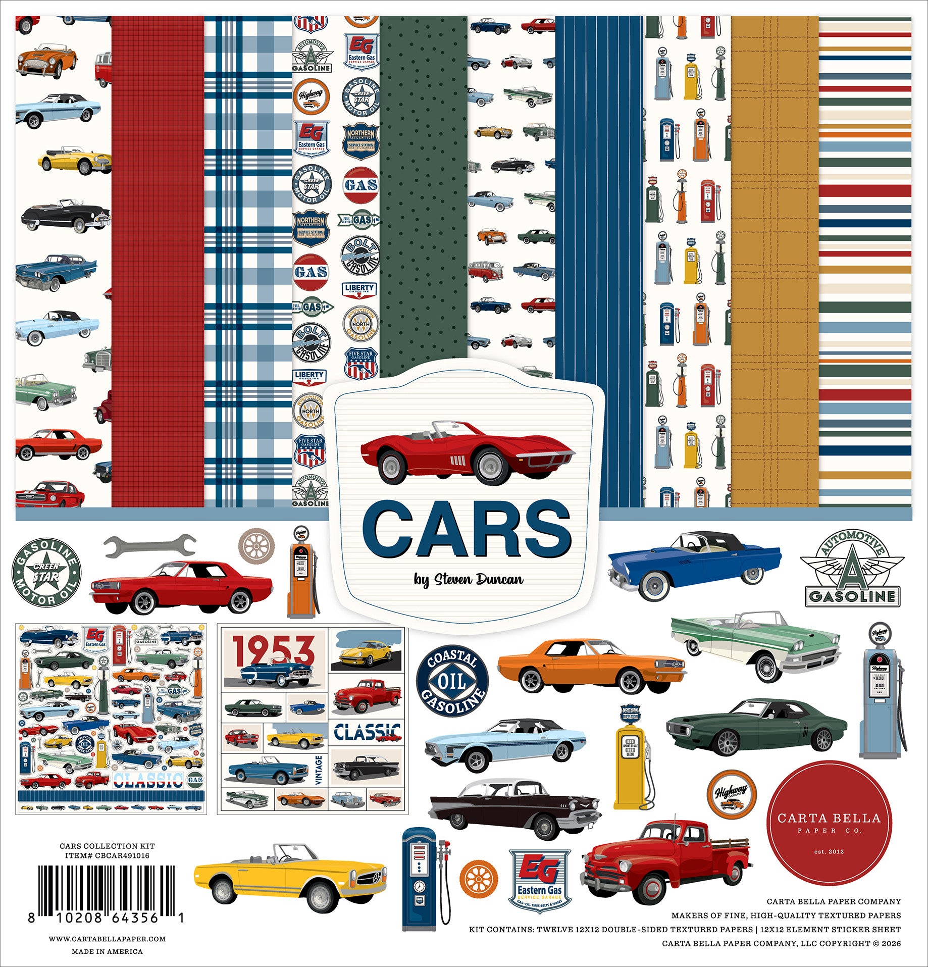 Cars - February 2026 - Collection Kit includes 1 of each 12x12 paper and 1 Element sticker.