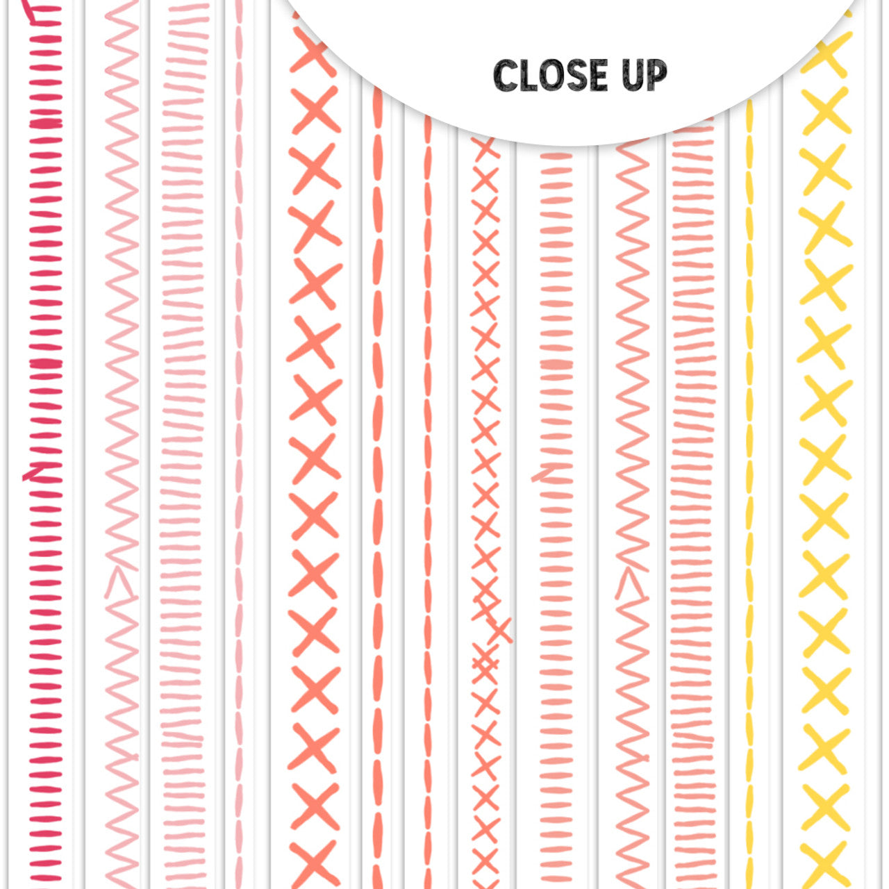 Add a pop of color to your scrapbooking projects with these faux stitches in pink, coral yellow, mint and teal clear stickers! These stickers are perfect for adding a whimsical and playful touch to your layouts, and the clear design allows them to blend seamlessly with your photos and embellishments.