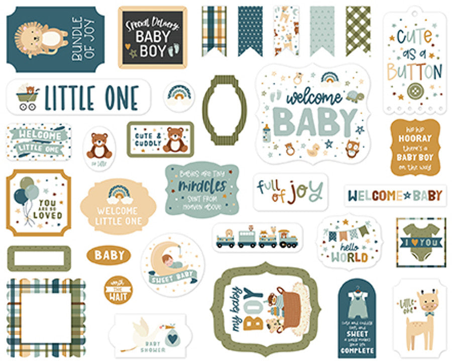 Ephemera Die Cut Cardstock Pack. Pack includes 33 different die cut shapes ready to embellish any project. Package size is 4.5" x 5.25"